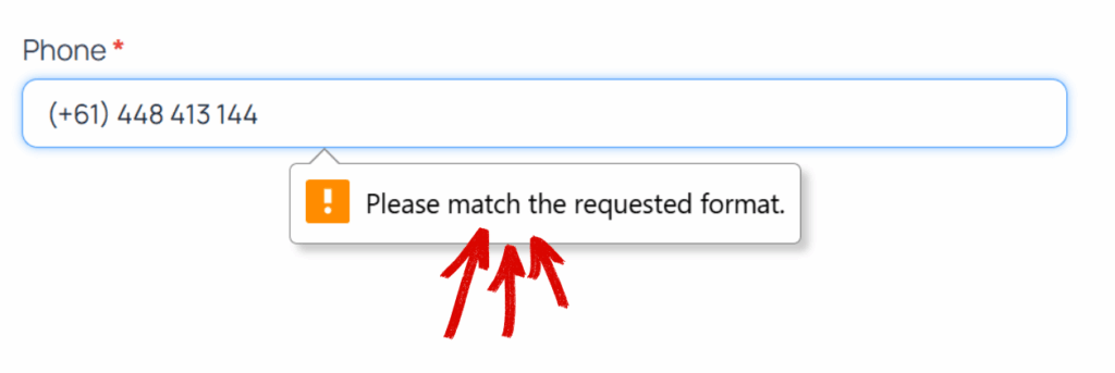 When users enter the wrong format, they see vague messages like “Please match the requested format.”