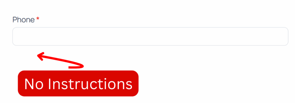 Validation rules are not explained in labels or instructions. For example, phone numbers cannot contain brackets or extra spaces, but users are not told this.
