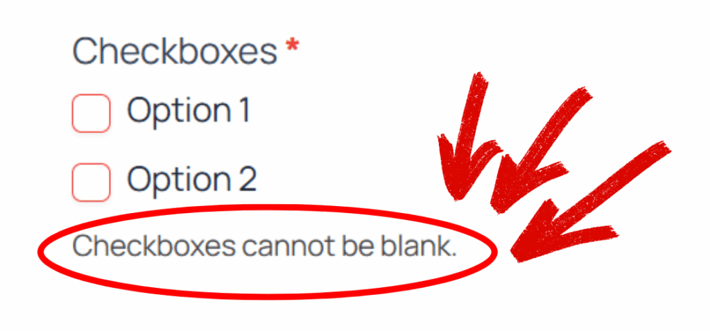 Error messages related to groups of fields, such as “Checkboxes cannot be blank” are not programmatically associated.
