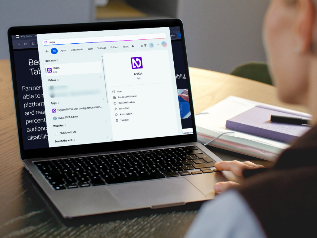 NVDA is a free screen reader available on Windows. In this video, NVDA with Braille view announces the text โBeing Your Journeyโฆโ and โPartner with Tab-ableโฆโ along with their heading levels as the user navigates each element.