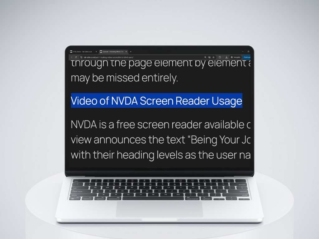Itโs good practice to identify the presence of a video in plain text. While it may seem redundant to sighted users, adding a phrase like โVideo ofโ beside or above the video helps blind users recognise it. Placing this in a heading makes it clear that the text refers to the video itself.